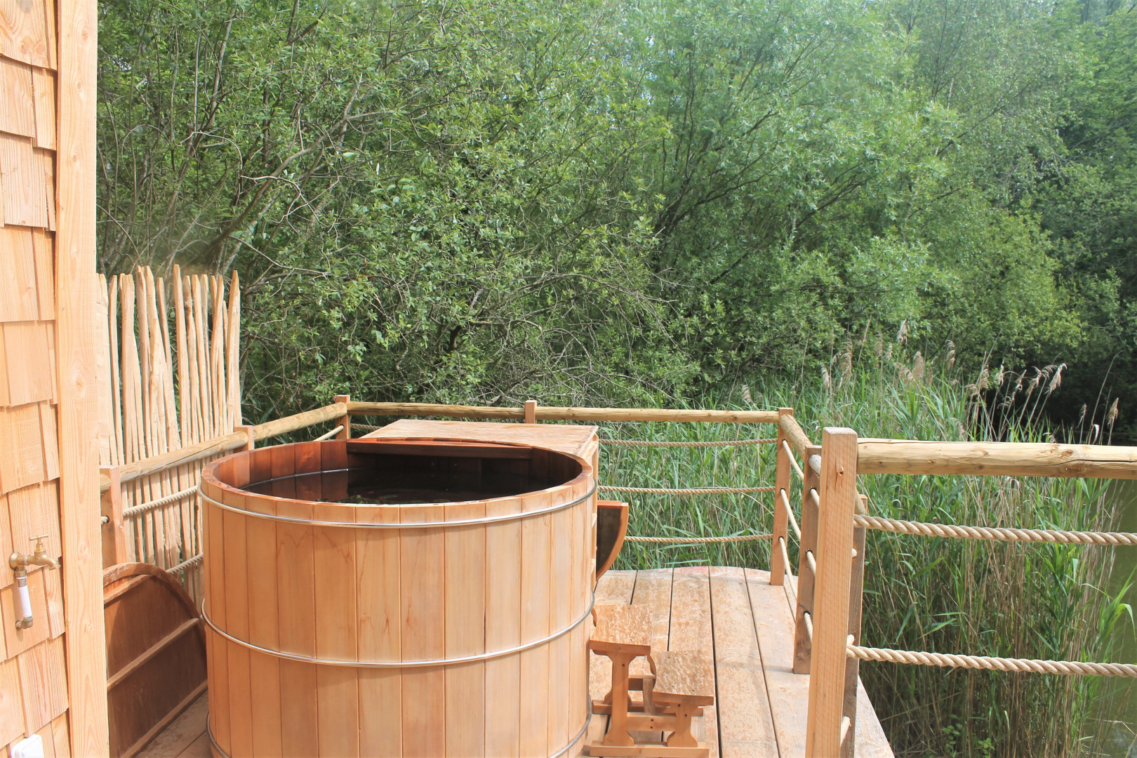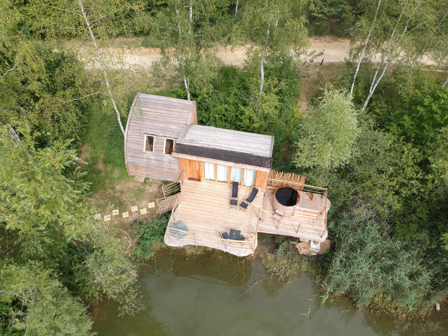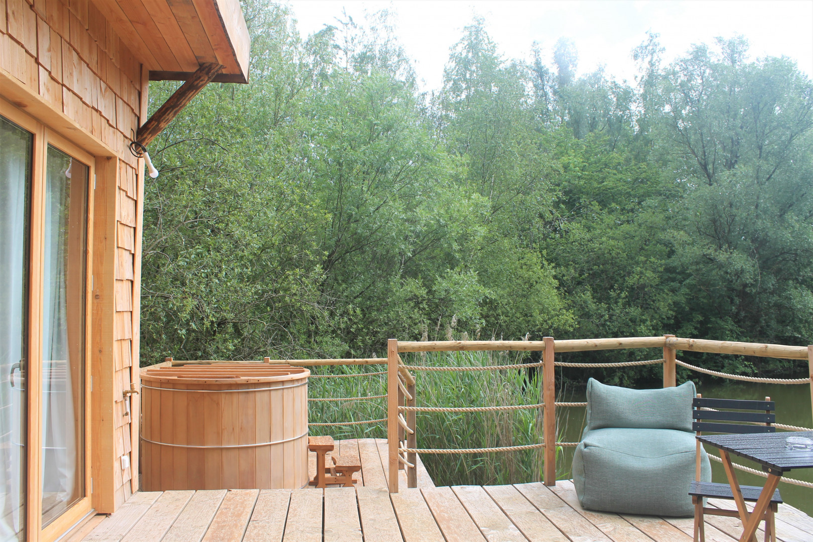 Deze drijvende 2-persoons hut staat in Noord-Frankrijk. In deze hut, gemaakt van boomstammen, slaap je boven het water en heb je een schitterend uitzicht over het meer. Extra luxe is de verwarmde hottub op het terras. Perfect voor een romantische vakantie in de natuur.