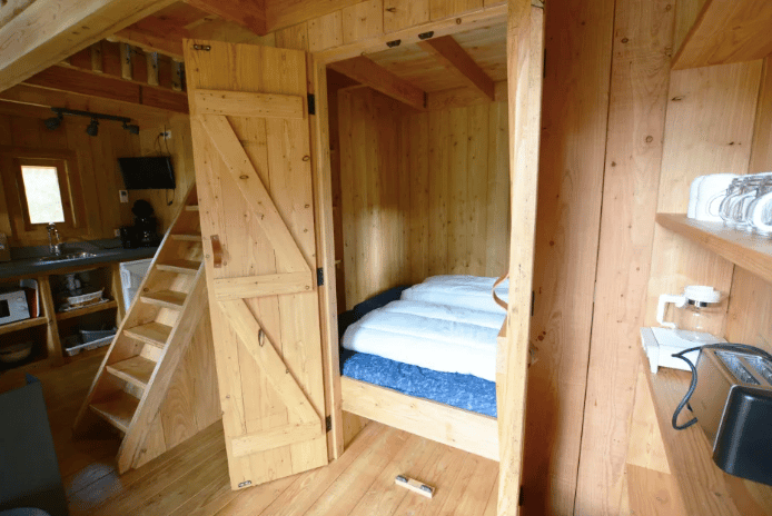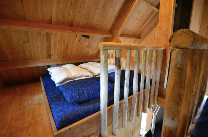 Samen op avontuur? De zwerfhut op hoogte is een houten huisje op poten, geschikt voor 5 personen. Het huisje voelt een beetje aan als een boomhut. Via een trap bereik je de ingang van het huisje. Je stapt binnen in het woongedeelte met gezellige zithoek en een open keuken. Er zijn twee slaapkamers, waarvan één tweepersoonsbedstee en een slaapvide met daar nog eens drie slaapplaatsen. Bovendien heeft de zwerfhut genoeg mogelijkheden om te genieten van het buitenleven en de omliggende natuur. Zo is er een balkon en een tuin met een picknicktafel en een schommelbank. Met wie ga jij slapen op hoogte?