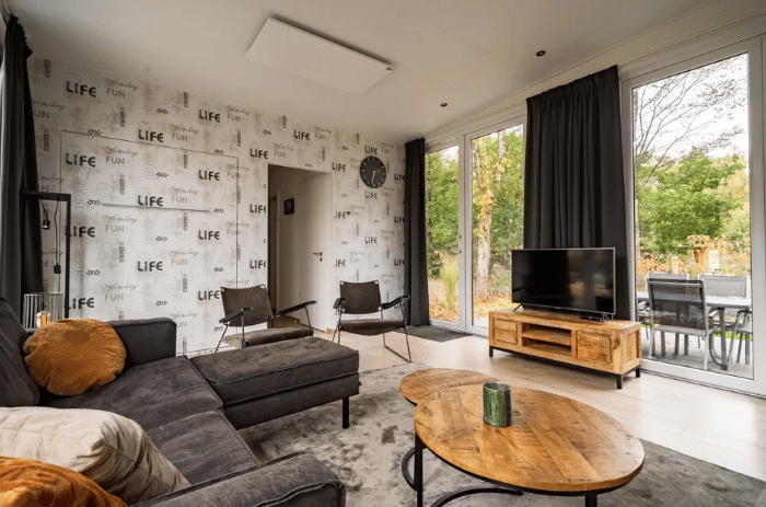 Een vakantie met het gezin? Dan is de vrijstaande Just Nature misschien wel wat voor jou. Het huisje is gelijkvloers en geschikt voor 4-personen. De woonkamer heeft een industriële inrichting. Door de vele ramen ga je bij dit huisje echt helemaal op in de natuur. De ruime woonkeuken is perfect voor wie houdt van uitgebreid koken. In het huisje vind je 2 slaapkamers met elk 2 eenpersoonsbedden. De Just Nature staat in een natuurrijke omgeving, waar je ook op het terras van geniet.